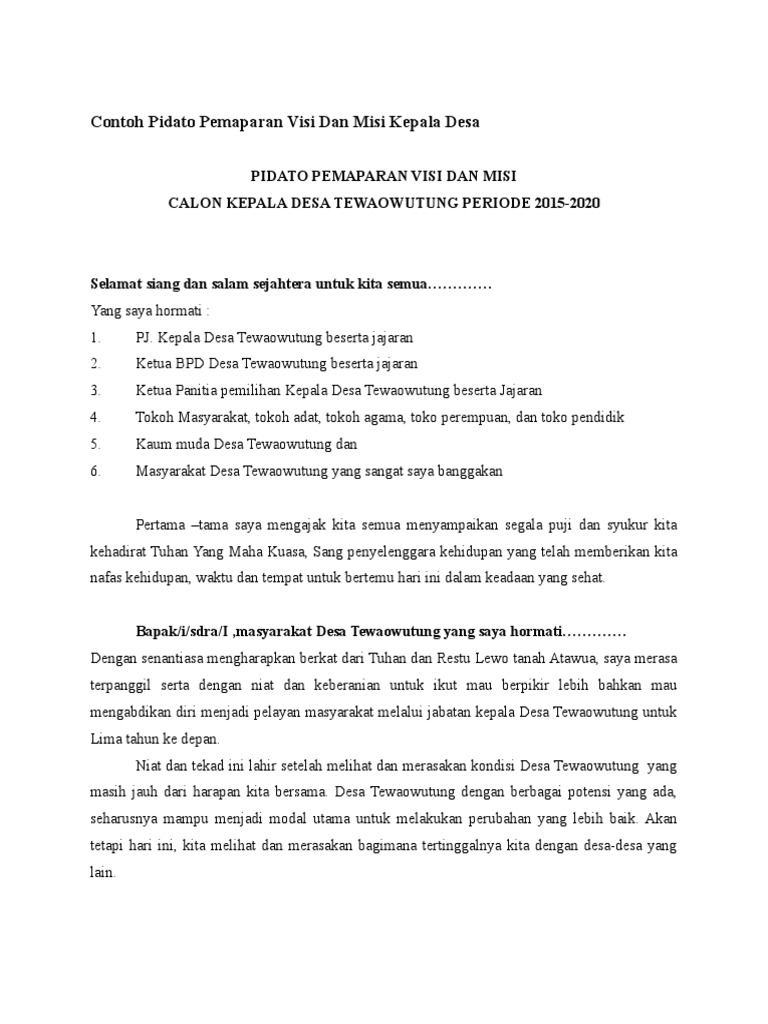 These are 15 Images about Contoh Pidato Pemaparan Visi Dan Misi Kepala Desa PDF
